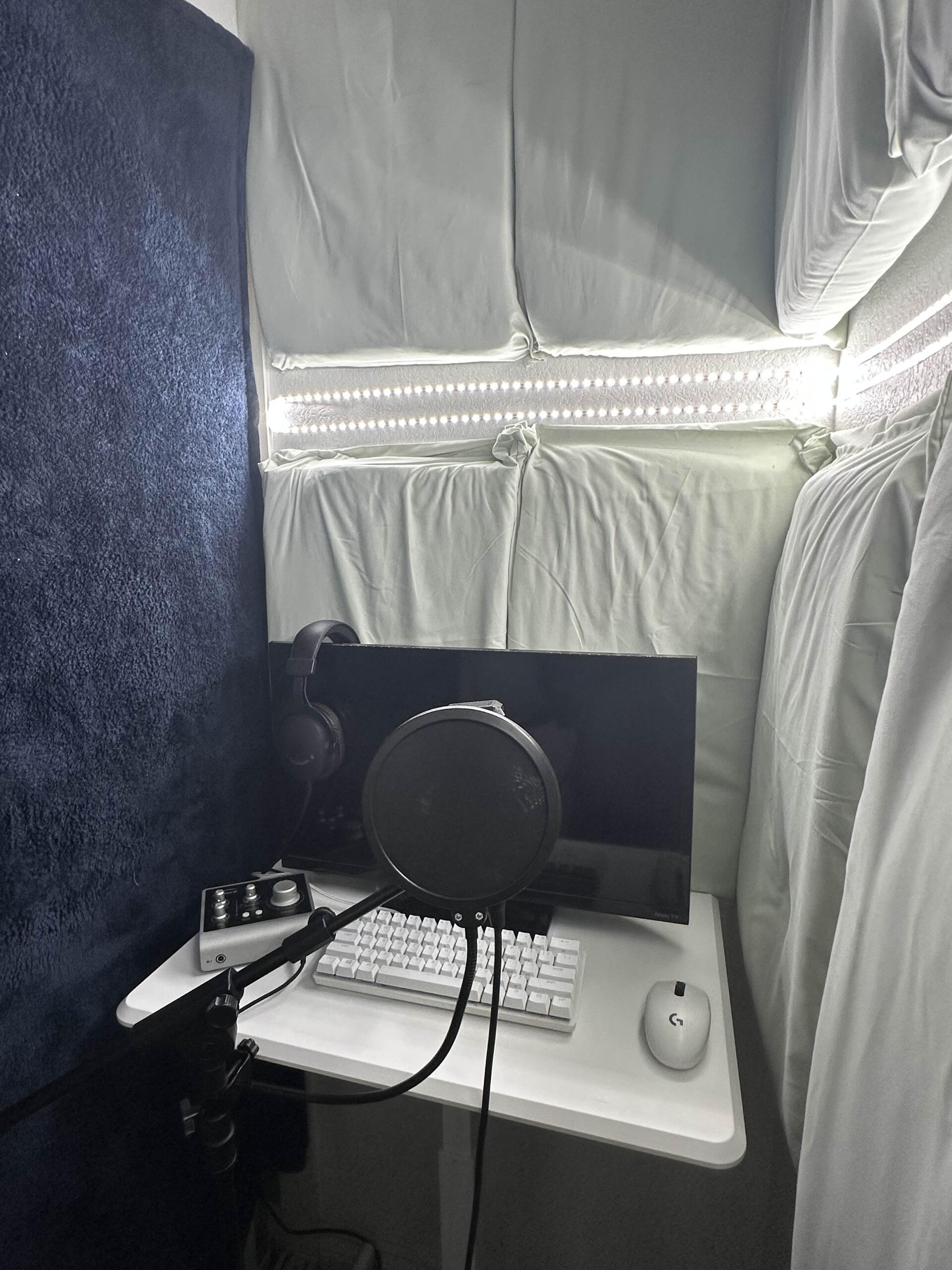 Recording Space - Walk-in closet booth padded with Rockwool Safe 'n Sound insulation