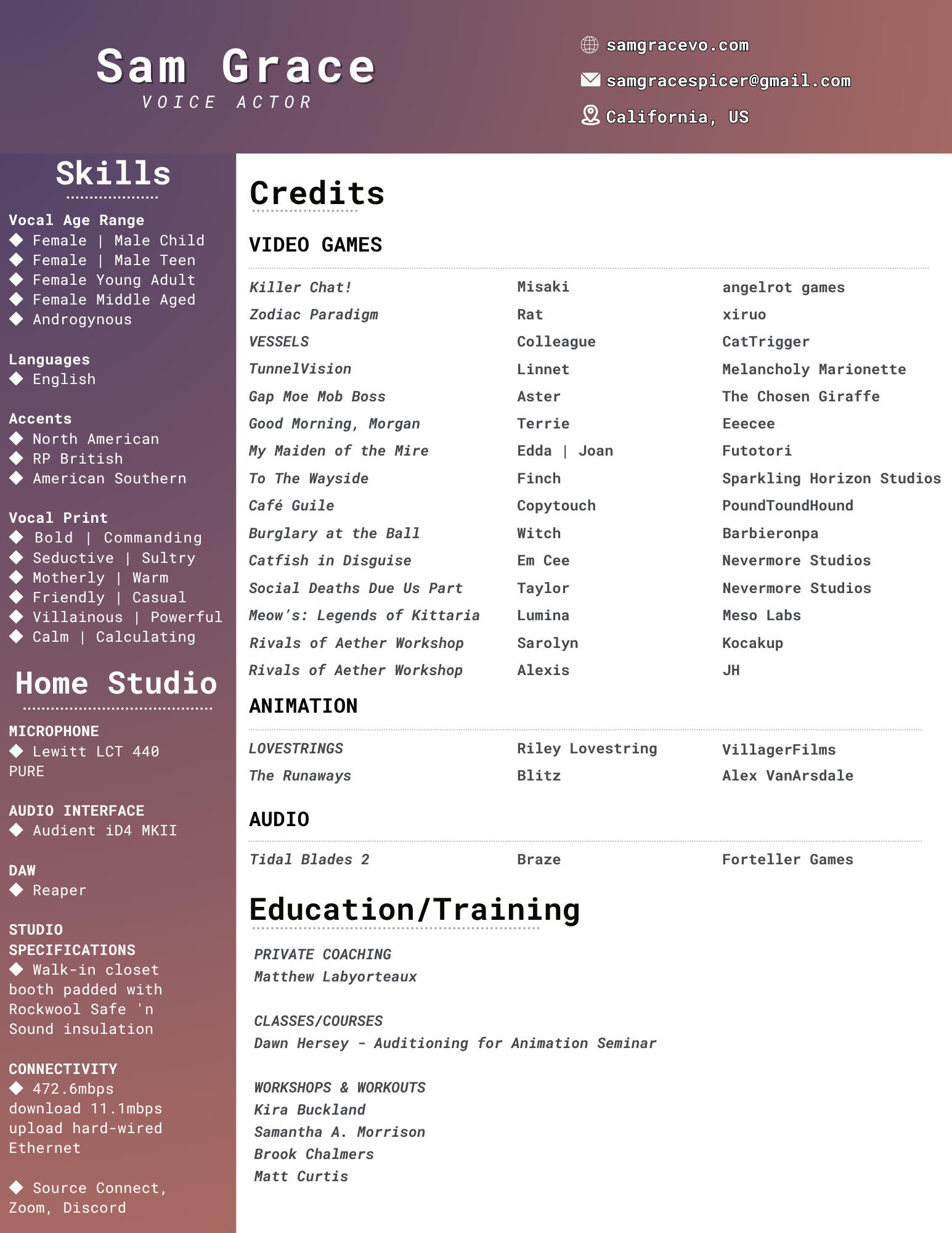 Hello! I'm Sam, 21 year old, trans male autistic and albino voice actor since 2017, always looking for new, exciting projects!